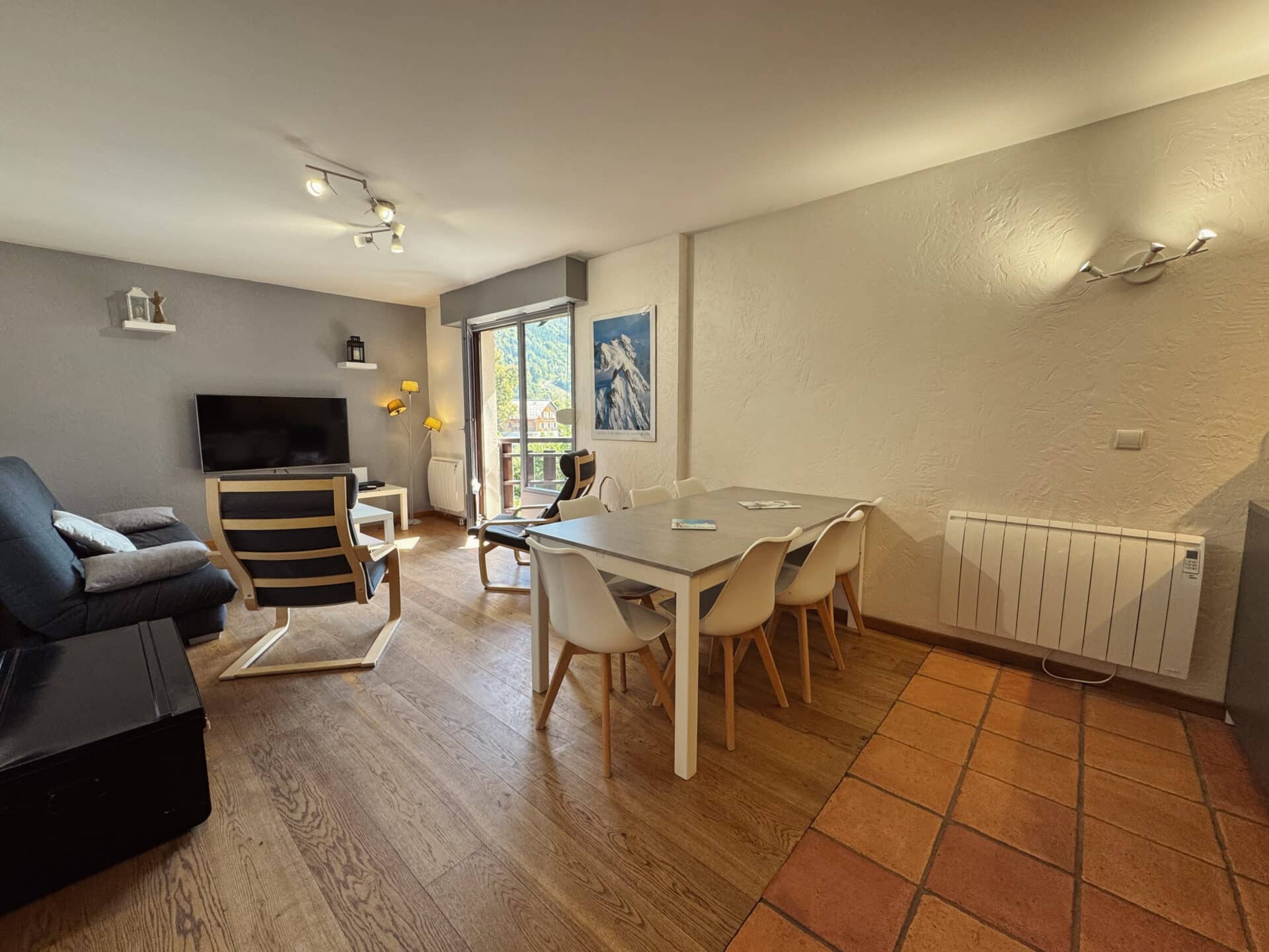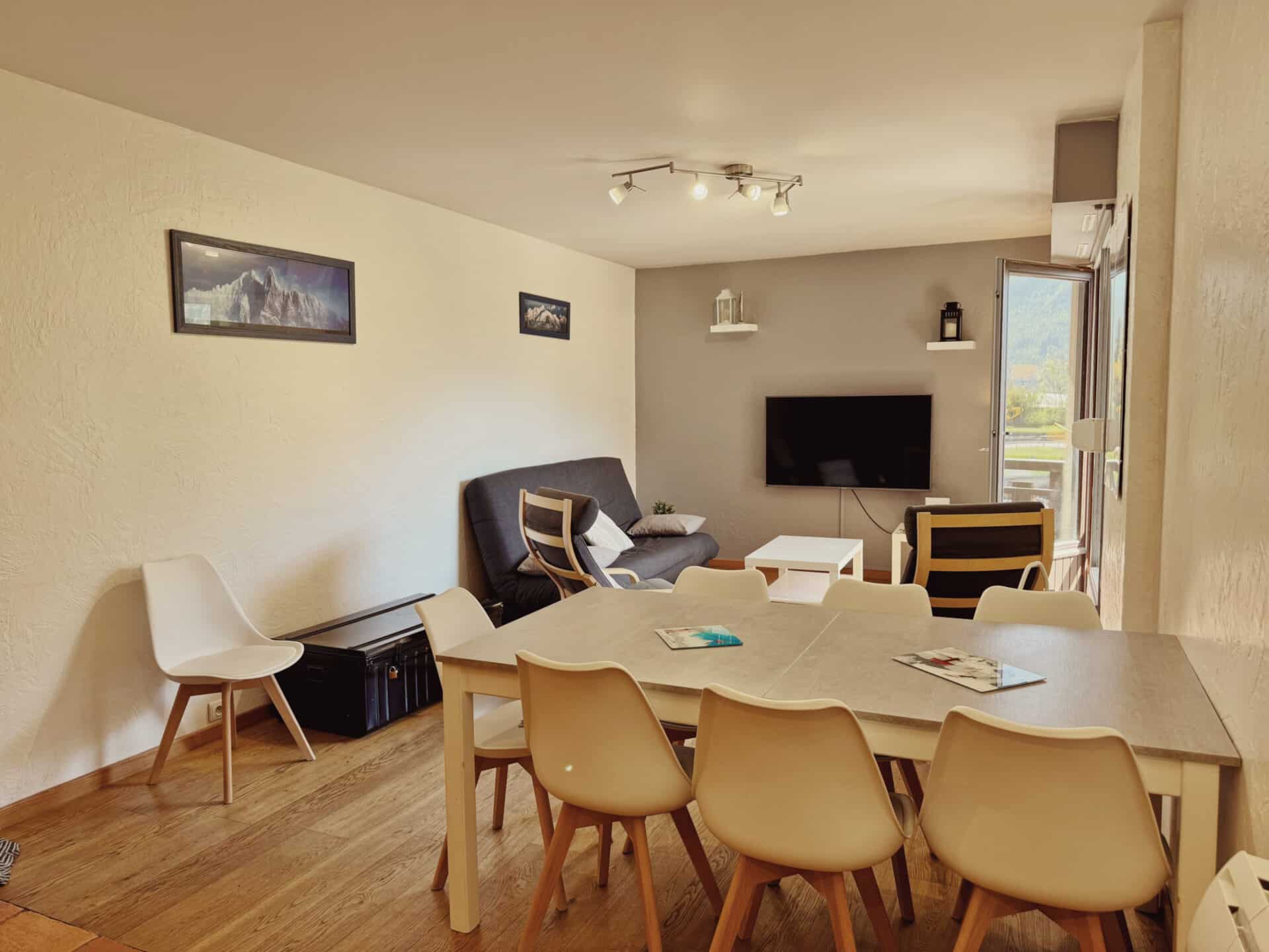 L’appartement se trouve au 3eme étage avec ascenseur et bénéficie d’une vue spectaculaire sur nos massifs . De style moderne , il est aussi spacieux , agréable à vivre à 6 personnes avec 2 belles chambres , 1 SDB offrant baignoire et douche , et une cuisine fonctionnelle .